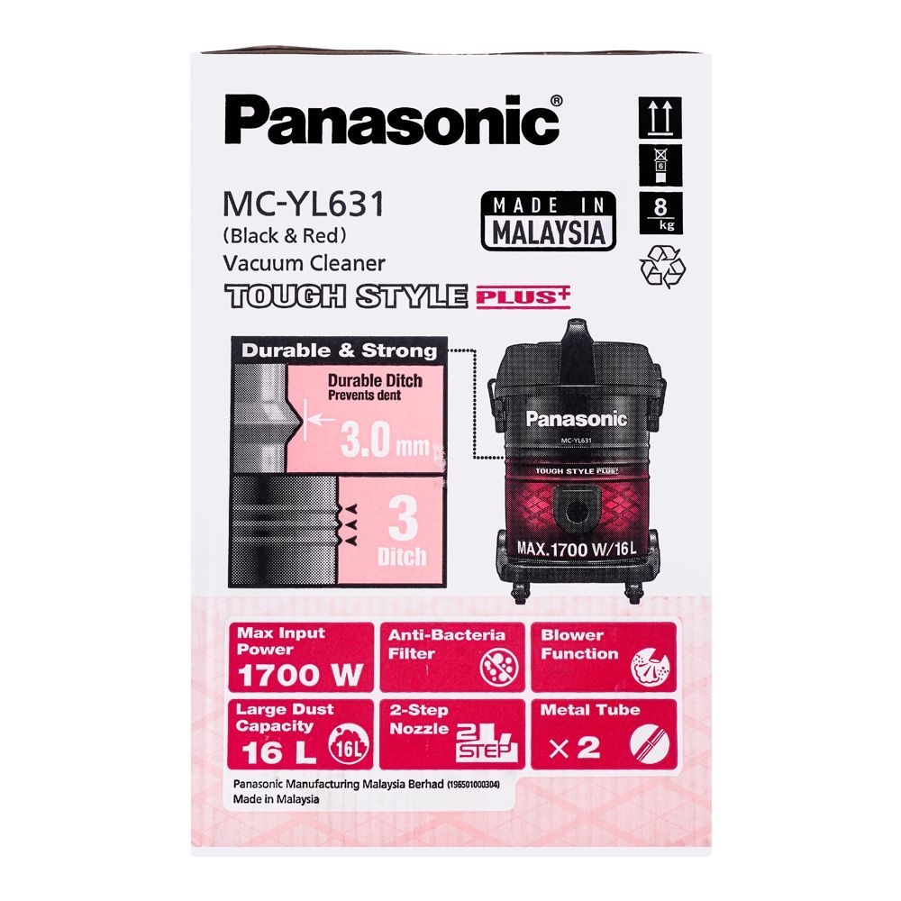 Upgrade your cleaning routine with the Panasonic 1700W Vacuum Cleaner MC-YL631. Engineered for superior performance and convenience, this powerful vacuum cleaner combines high suction power with advanced features to tackle dirt, dust, and debris with ease. From carpets to hard floors, pet hair to fine particles, the Panasonic MC-YL631 delivers exceptional cleaning results every time.